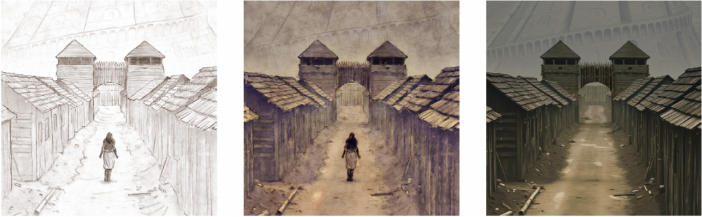 Um die Welt der Skybridge wie ursprünglich im Prototyp angelegt vermitteln zu können, wollte ich die Karten mit einer Bandbreite unterschiedlicher realistischer Stile anlegen. Mir war es wichtig, möglichst viele Details zu zeigen, die die Völker und ihre Geschichten glaubhaft erscheinen lassen.