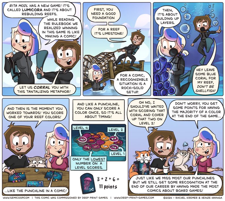 Das Spiel geht über 10 Runden und am Ende jeder Runde hast du die Möglichkeit für eine von 4 Korallenarten zu punkten. Finde das richtige Timing und baue das wertvollste Riff, um zu gewinnen!
